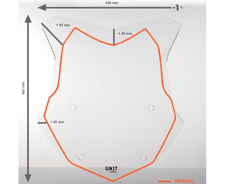This windshield is designed to be assembled without any modification, re-using the original screws and supports.