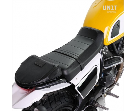 The seat is made with a plastic base, high quality foam and a radiofrequency printed cover. To complete the rear frame an ABS cover is included. The extra space behind the seat is great for increasing luggage options when travelling alone. The comfortable seat can be used by a pilot and a passenger. The locking mechanism is re-used, so you can continue to operate the key of your motorcycle to unlock the seat. Total length of the seat is 50 cm (which can be increased to 72 cm with the addition of the passenger seat).