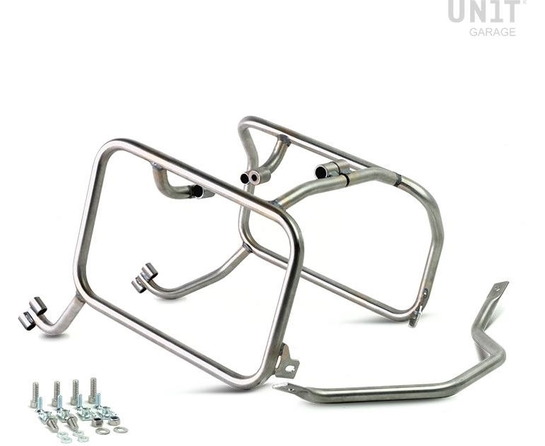 This complete set of frames made of stainless steel allows you to mount our Atlas Aluminum cases, UG002, or U003 on HUSQVARNA models. They integrate perfectly with the rest of the bike. Ready to host our aluminum bags in different sizes. Comes complete with mounting kit and screws. It can be mounted on the bike in combination with our accessories or with the original accessories, it is not necessary to replace or modify anything. The frames are mounted with our roof rack or with the original one, and also with the passenger handle. They can be used comfortably with the passenger on board.