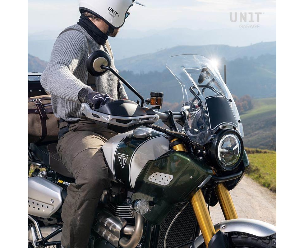 The Kit is Plug and Play, it is not necessary to modify or tamper with the original components. At any time you will be able to restore your bike to its original configuration. The bike completely changes character and becomes very versatile and suitable for any adventure. The bike can be equipped with our aluminium cases with dedicated stainless steel frames, or with the infinite options of soft luggage that we have in our catalogue. Of course, in addition to the standard Dual Scrambler Kit, you will have the possibility to fit your Triumph with other accessories from our SPECIAL PARTS section.