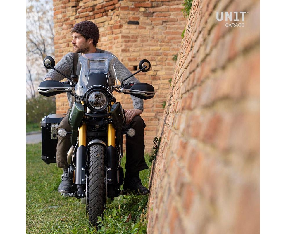 After about 2 hours of installing the Dual Scrambler Kit you will have very easily revolutionized the look of your bike, without changing any of the original parts. You will not have to replace the headlight or indicators. You will have an adjustable windshield, GPS support and a front fairing. The Kit follows the styling cues of the bike in both shape and colours.