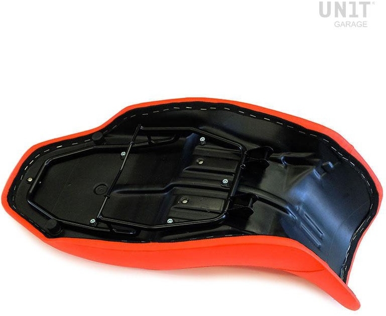 Long seat of our own production. Thanks to the particular shape of our saddle, which is narrower and more rounded than the original one, the legs are less spread apart allowing the feet to touch the ground more easily. The seat is made of high quality synthetic leather, hand stitched with cotton thread. They are produced and designed to handle long journeys.