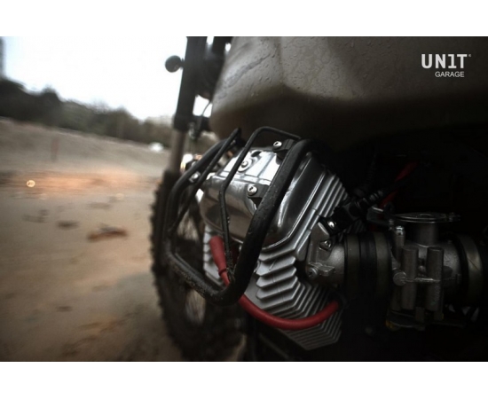 Hand made steel cylinder protection tubes coated with high density powder coat,color matt black ,that in addition to protecting the cylinder heads in case of a crash, give justice to your bike valuing the legendary V-twin engine.