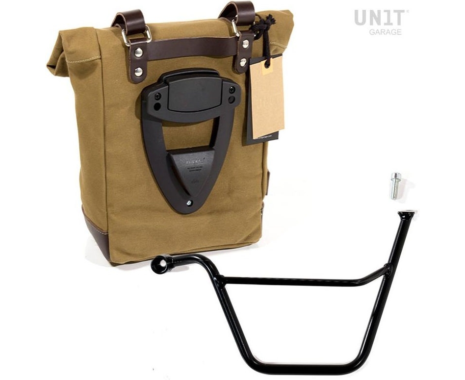 Unit Garage Side Pannier Canvas + Left Subframe Triumph Bonneville T100 (2001-2016), Beige/Brown | U001+1005SX_Beige-Brown
