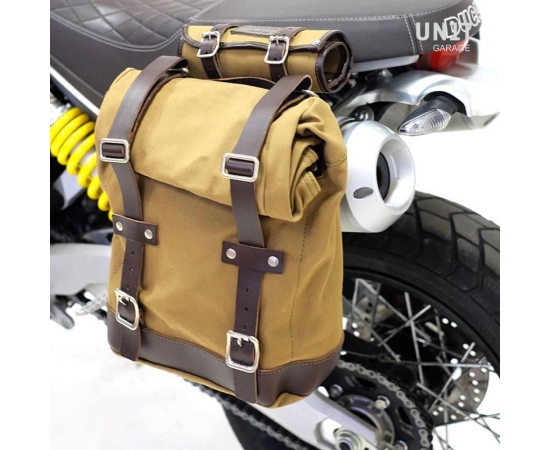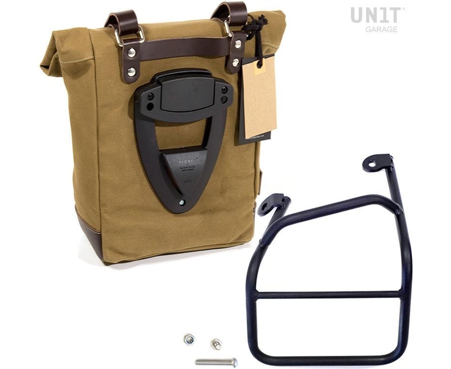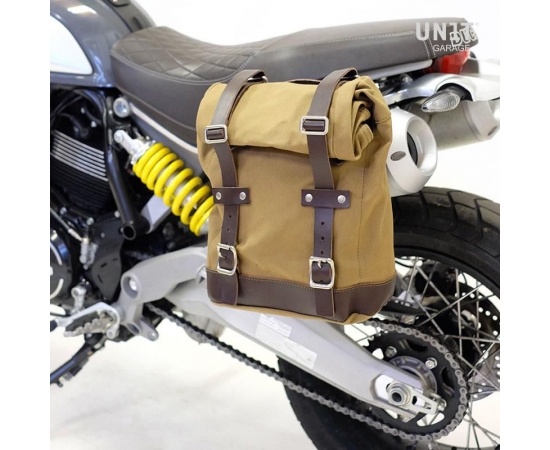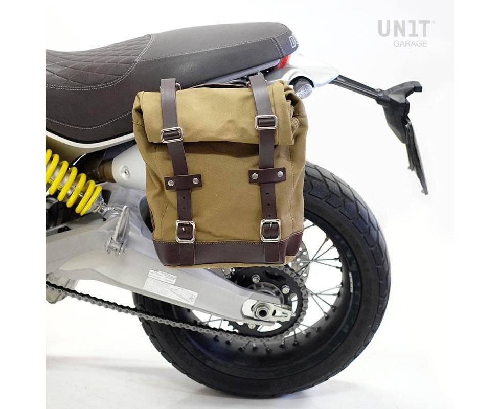 Unit Garage Side pannier Canvas + Left subframe Ducati Scrambler 1100, Beige/Brown | U001+1010SX_Beige-Brown