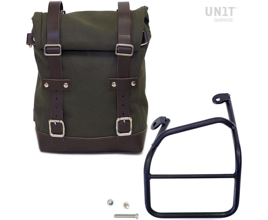 Unit Garage Side pannier Canvas + Left subframe Ducati Scrambler 1100, Green/Brown | U001+1010SX_Green-Brown