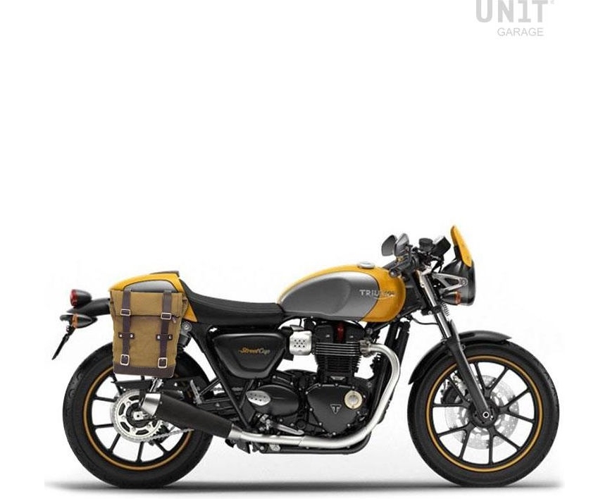 Unit Garage Side Pannier Canvas + Right Subframe Triumph Street 900 Series (2017 until now), Beige/Brown | U001+1013DX_Beige-Brown