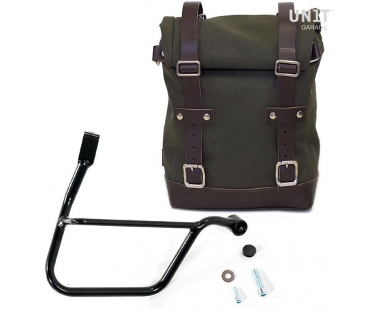 Unit Garage Side Pannier Canvas + Right Subframe Triumph Street 900 Series (2017 until now), Green/Brown | U001+1013DX_Green-Brown