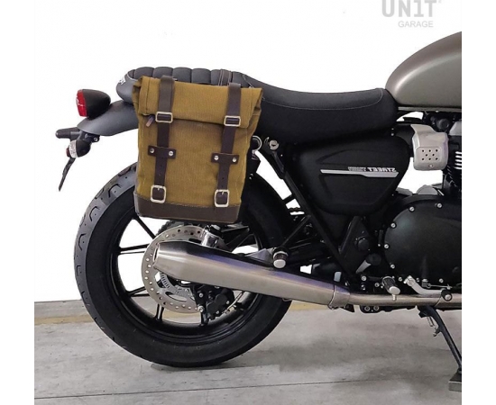 Unit Garage Side Pannier Canvas + Right Subframe Triumph Street Twin 900 (2016 until now), Beige/Brown | U001+1017DX-Beige-Brown