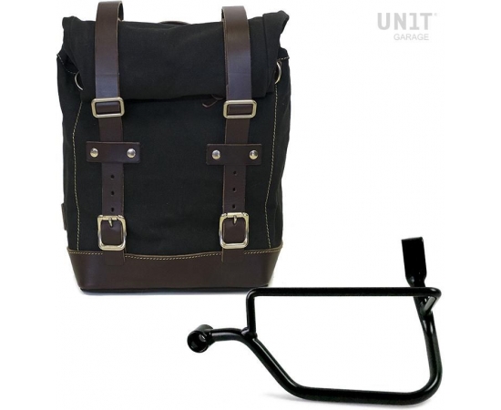 Unit Garage Side Pannier Canvas + Left Subframe Triumph Street Twin 900 (2016 until now), Black/Brown | U001+1017SX-Black-Brown