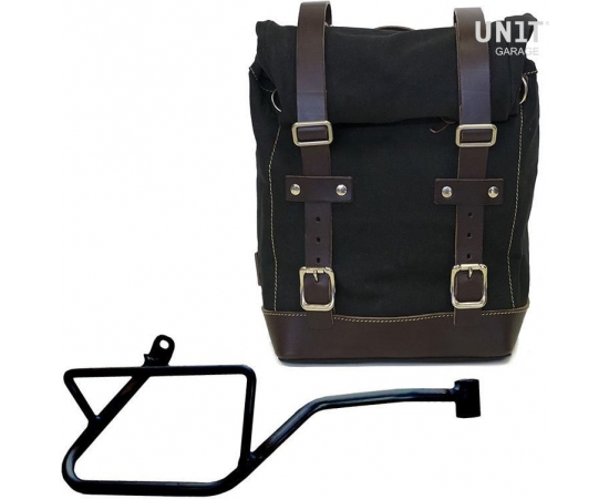 Unit Garage Side Pannier Canvas + Right Subframe Guzzi V7_850, Black/Brown | U001+2216DX-Black-Brown