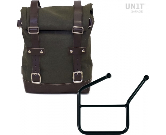 Unit Garage Side Pannier Canvas + Left Subframe HUSQVARNA, Green/Brown | U001+3007SX-Green-Brown