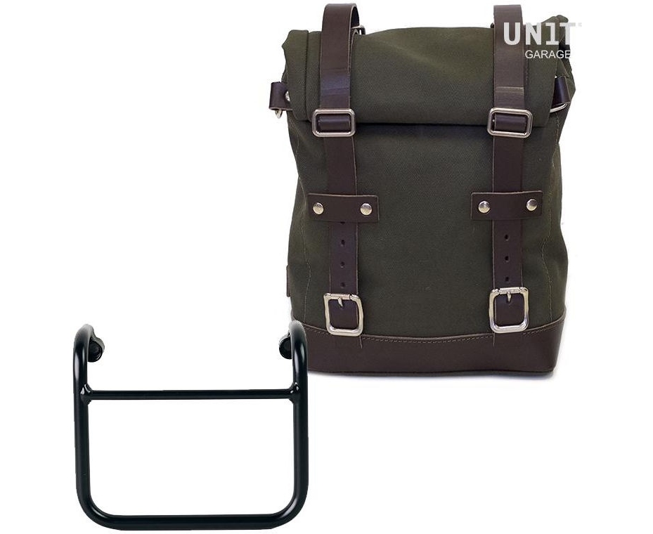 Unit Garage Side Pannier Canvas + Subframe R18 for Straight pipe exhaust, Green/Brown | U001+3400-Green-Brown