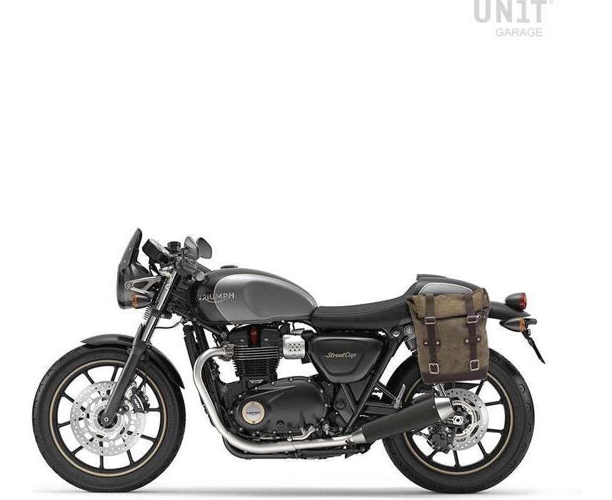 Unit Garage Waxed Suede Side Pannier + Left Subframe Triumph Street 900 Series (2017 until now), MossGrey | U002+1013SX-MossGrey