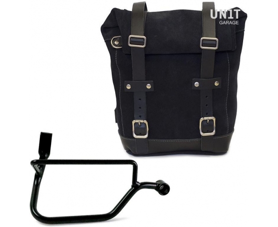 Unit Garage Waxed Suede Side Pannier + Right Subframe Triumph Street Twin 900 (2016 until now), JetBlack | U002+1017DX-JetBlack