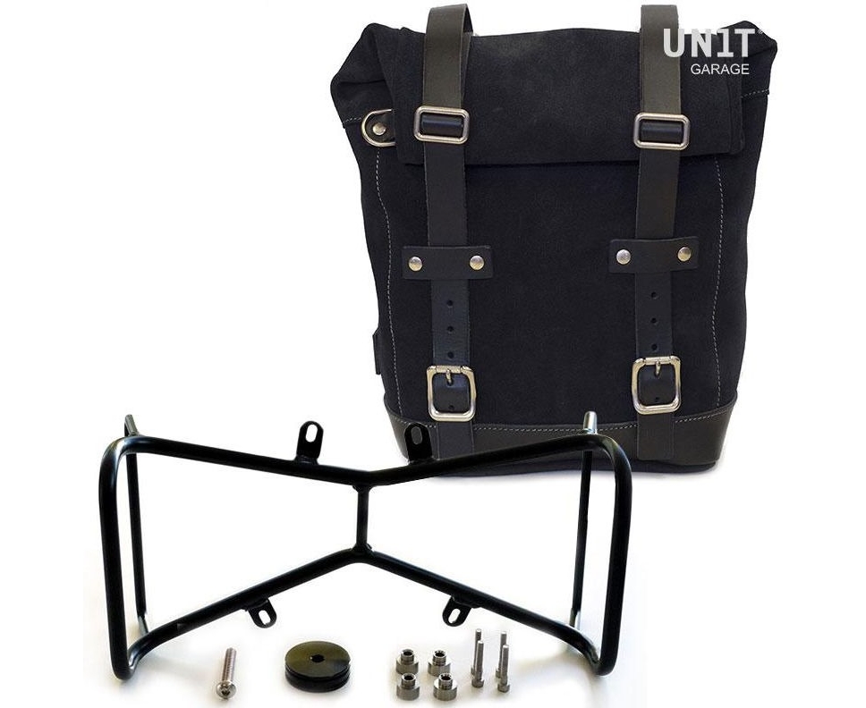 Unit Garage Waxed suede Side Pannier + Symmetrical Double Subframe NineT, JetBlack | U002+1632+A2-JetBlack
