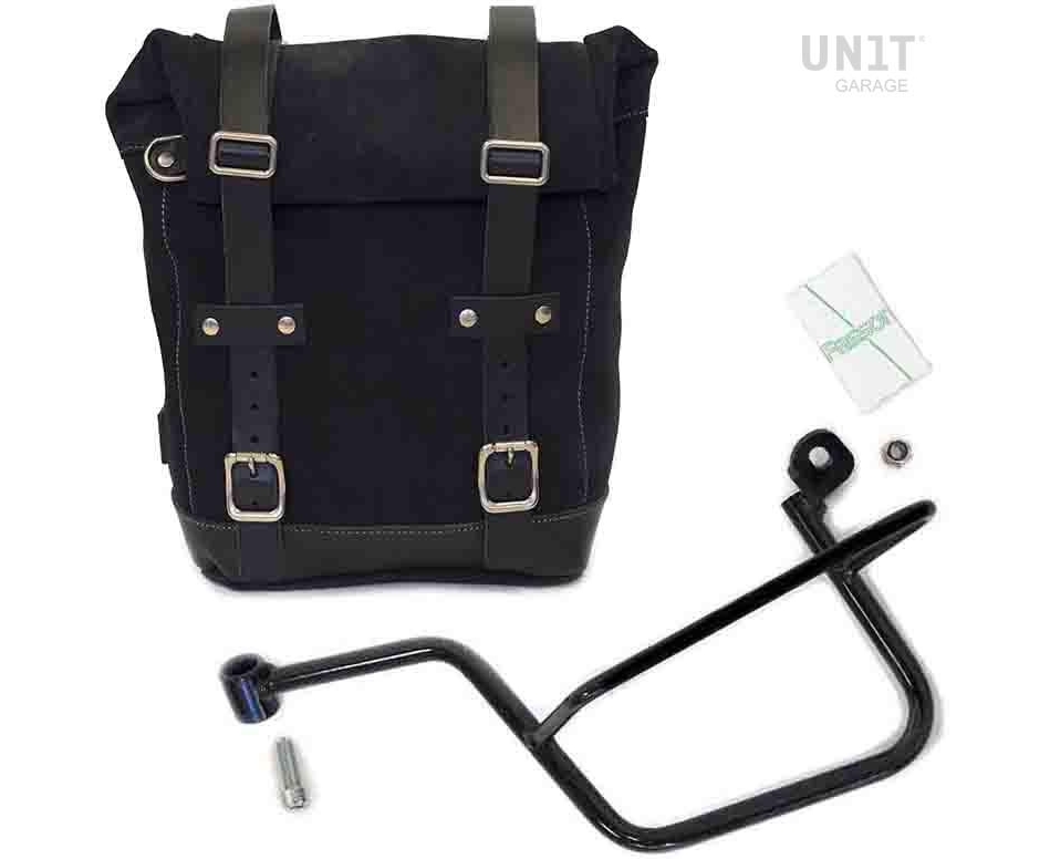 Unit Garage Waxed Suede Side Pannier + Left Subframe Guzzi V7, JetBlack | U002+2213SX-JetBlack