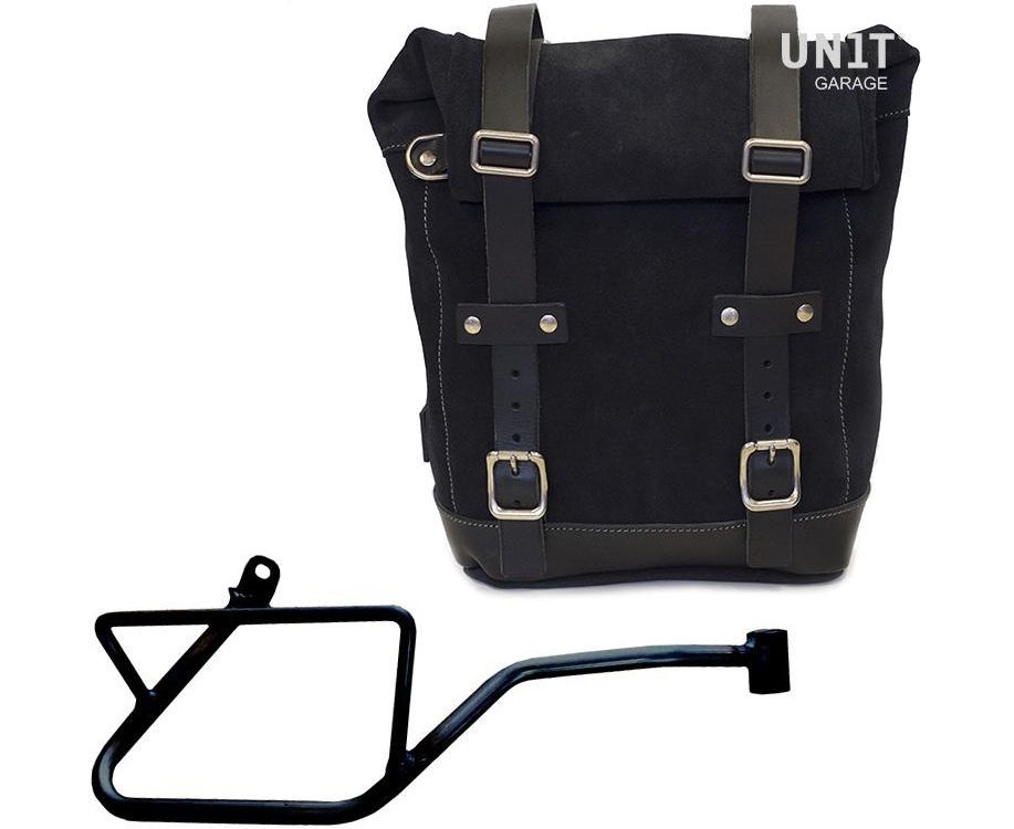 Unit Garage Waxed Suede Side Pannier + Right Subframe Guzzi V7_850, JetBlack | U002+2216DX-JetBlack