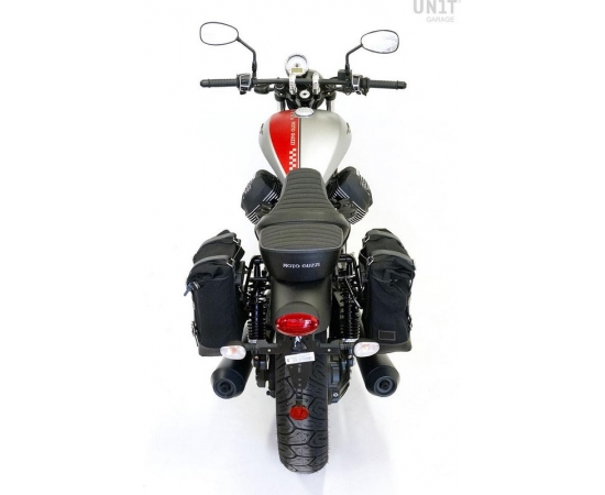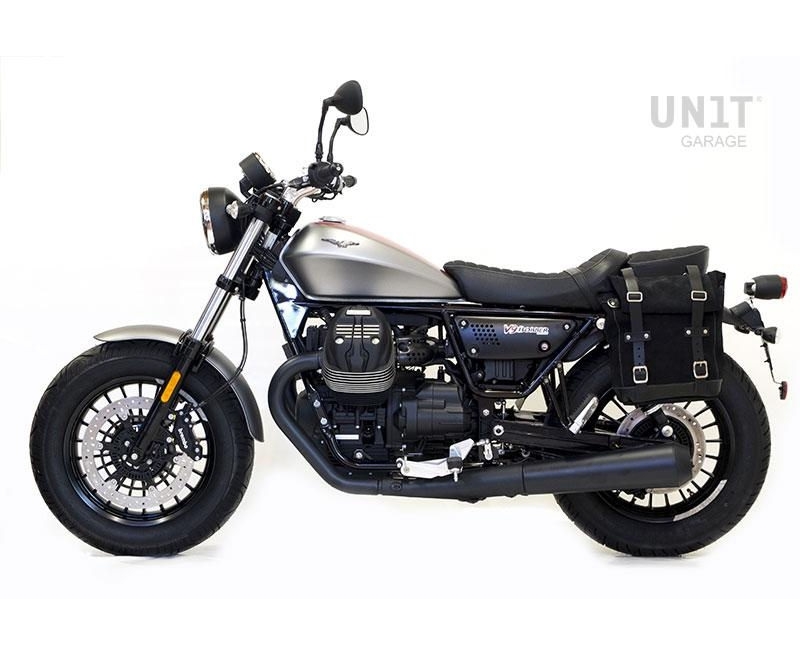 Unit Garage Waxed Suede Side Pannier + Left Subframe Guzzi V9 Bobber, JetBlack | U002+2250SX-JetBlack
