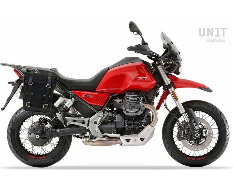 Unit Garage Waxed Suede Side Pannier + Right Subframe Guzzi V85 TT, JetBlack | U002+2251DX-JetBlack
