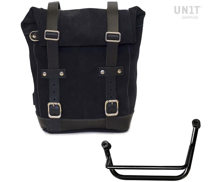 Unit Garage Waxed Suede Side Pannier + Left Subframe Guzzi V85 TT, JetBlack | U002+2251SX-JetBlack