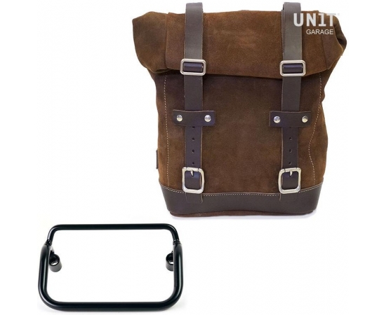 Unit Garage Waxed suede Side Pannier + R18 frame for Fishtail exhaust, ColoradoBrown | U002+3401-ColoradoBrown