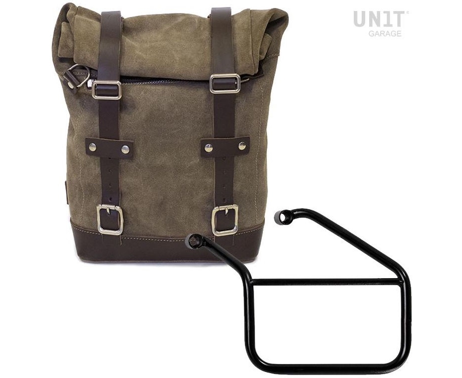 Unit Garage Waxed Suede Side Pannier + Left Subframe Triumph Trident 660, MossGrey | U002+3500SX-MossGrey