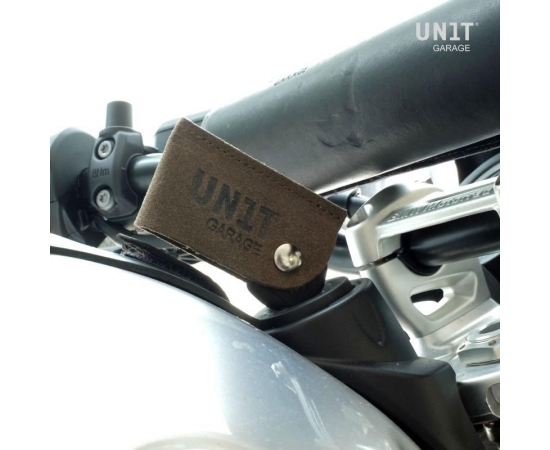 Keychain in split leather printed with our logo. It can be used with a single key, or with multiple keys by adding a ring.