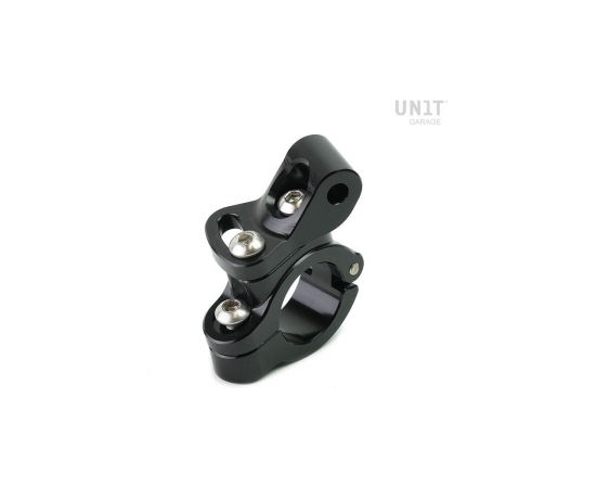 With this support, obtained from the CNC, you can fix the original BMW headlights or similar on the 25 mm diameter bars. The system allows the fixing support to be rotated by 40 degrees, so you can also mount it on inclined bars. You will also have various possibilities by rotating the arm or reversing the fixing support. The support can also be used for small cameras or GoPro