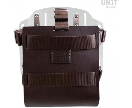 The carrying system plate in anodized aluminum complete with adjustable leather front, U-bolts and screws. The plate can be fixed very quickly to any tube frame for aluminum bags with the 4 supplied U-bolts, creating a flat mounting surface on the side of the bike, this will allow the transport of bags without hooking or other objects, such as sleeping bags, jackets etc. It is compatible with all OEM and aftermarket hose systems on the market. The front flap, with attention to the smallest details with 3 mm leather finishes, can be adjusted using the supplied sliders and can be removed very quickly from the plate.