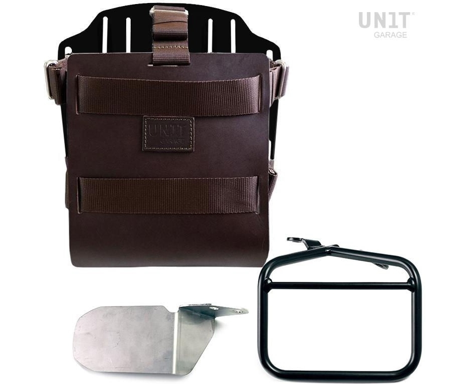 Unit Garage Carrying system in aluminum with adjustable leather front, Quick Release System and right frame, Brown/Black | U085+U000+1007DX-Brown-Black
