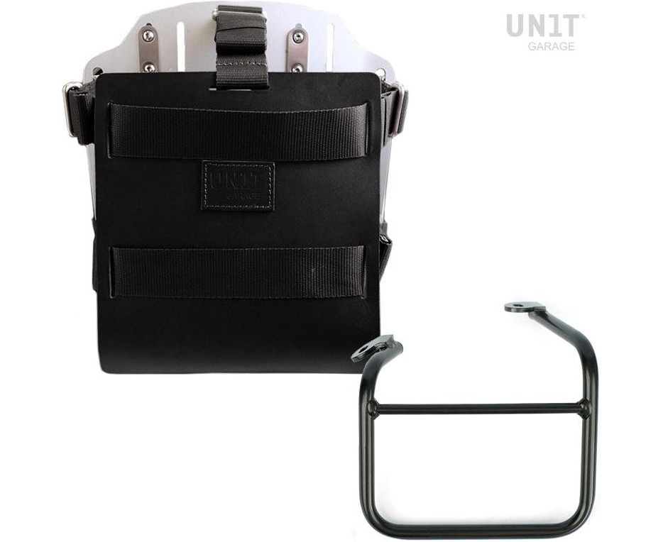 Unit Garage Carrying system in aluminum with adjustable leather front, Quick Release System and frame Scrambler 1100 with double exhaust on the right, Black/Silver | U085+U000+1009SX-Black-Silver