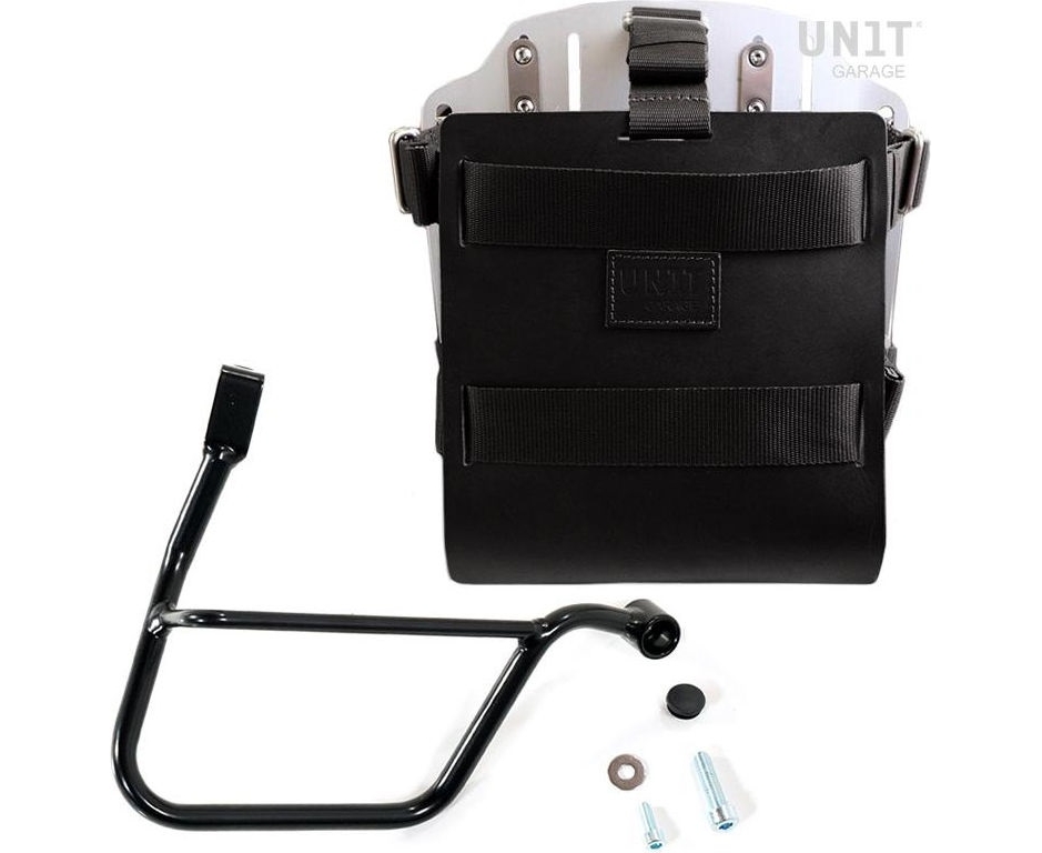 Unit Garage Carrying system in aluminum with adjustable leather front, Quick Release System and frame (2016 until now), Black/Silver | U085+U000+1013DX-Black-Silver