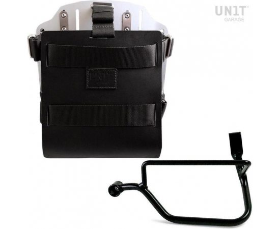 Carrying system in aluminum complete with adjustable leather front. It quickly attaches to our bag holder frames with the quick release system cod.U000 already included and mounted on the back of the plate , which is equipped with a lock for locking on the frame itself. The plate creates a flat mounting surface on the side of the bike, this will allow the transport of unattached bags or other objects, such as sleeping bags, jackets etc. The front flap, with attention to the smallest details with 3 mm leather finishes, can be adjusted using the supplied sliders and can be removed very quickly from the plate.