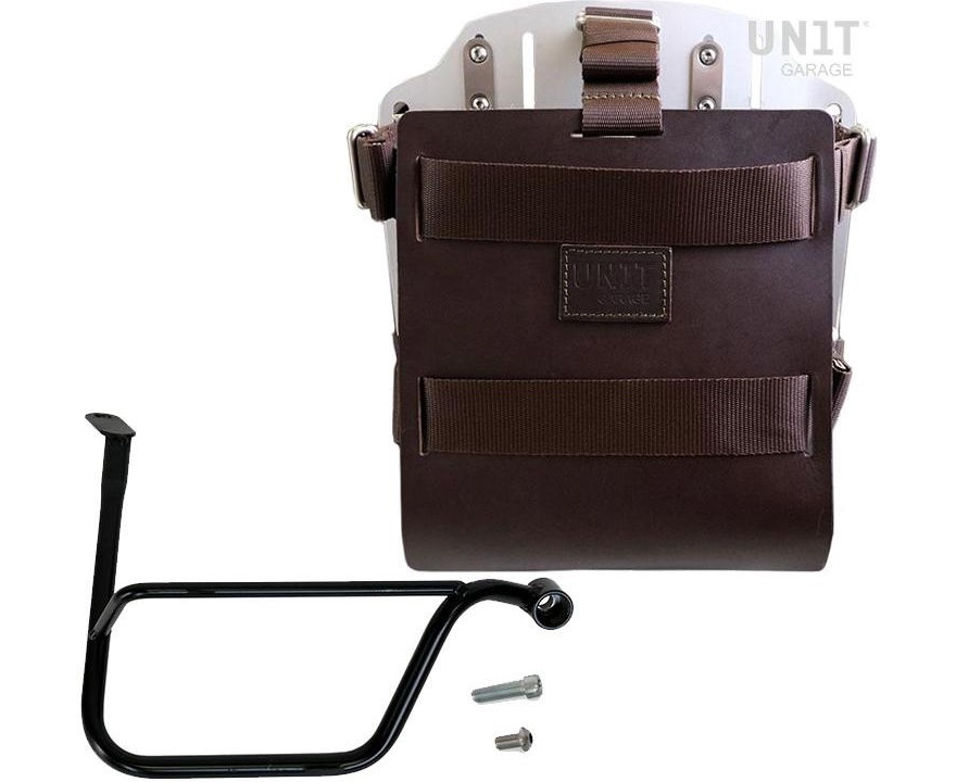 Unit Garage Carrying system in aluminum with adjustable leather front, Quick Release System and frame (2016 until now), Brown/Silver | U085+U000+1020DX-Brown-Silver