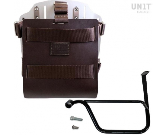 Unit Garage Carrying system in aluminum with adjustable leather front, Quick Release System and frame (2016 until now), Brown/Silver | U085+U000+1020SX-Brown-Silver
