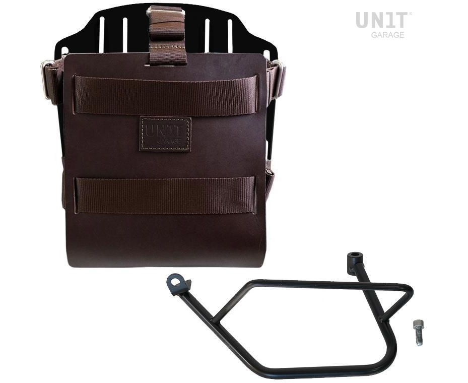Unit Garage Carrying system in aluminum with adjustable leather front, Quick Release System and frame, Brown/Black | U085+U000+1021SX-Brown-Black