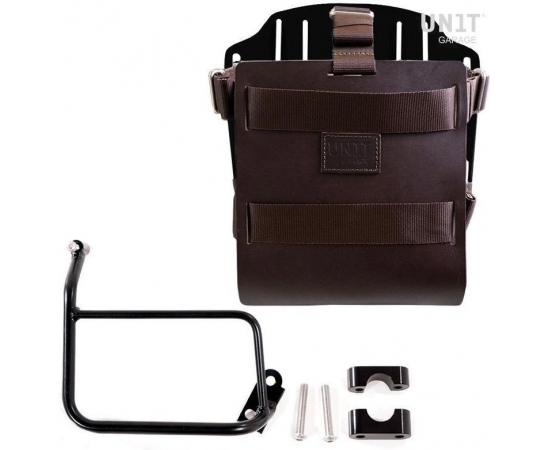 Unit Garage Carrying system in aluminum with adjustable leather front, Quick Release System and frame, Brown/Black | U085+U000+1229-Brown-Black