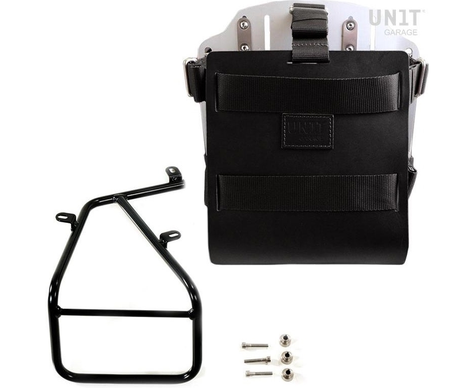 Unit Garage Carrying system in aluminum with adjustable leather front, Quick Release System and frame, Black/Silver | U085+U000+1620-Black-Silver
