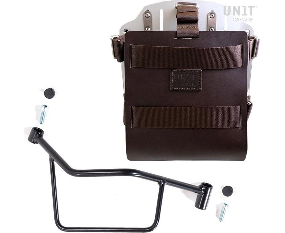 Unit Garage Carrying system in aluminum with adjustable leather front, Quick Release System and frame, Brown/Silver | U085+U000+2101DX-Brown-Silver