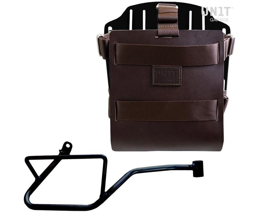 Unit Garage Carrying system in aluminum with adjustable leather front, Quick Release System and frame, Brown/Black | U085+U000+2216DX-Brown-Black
