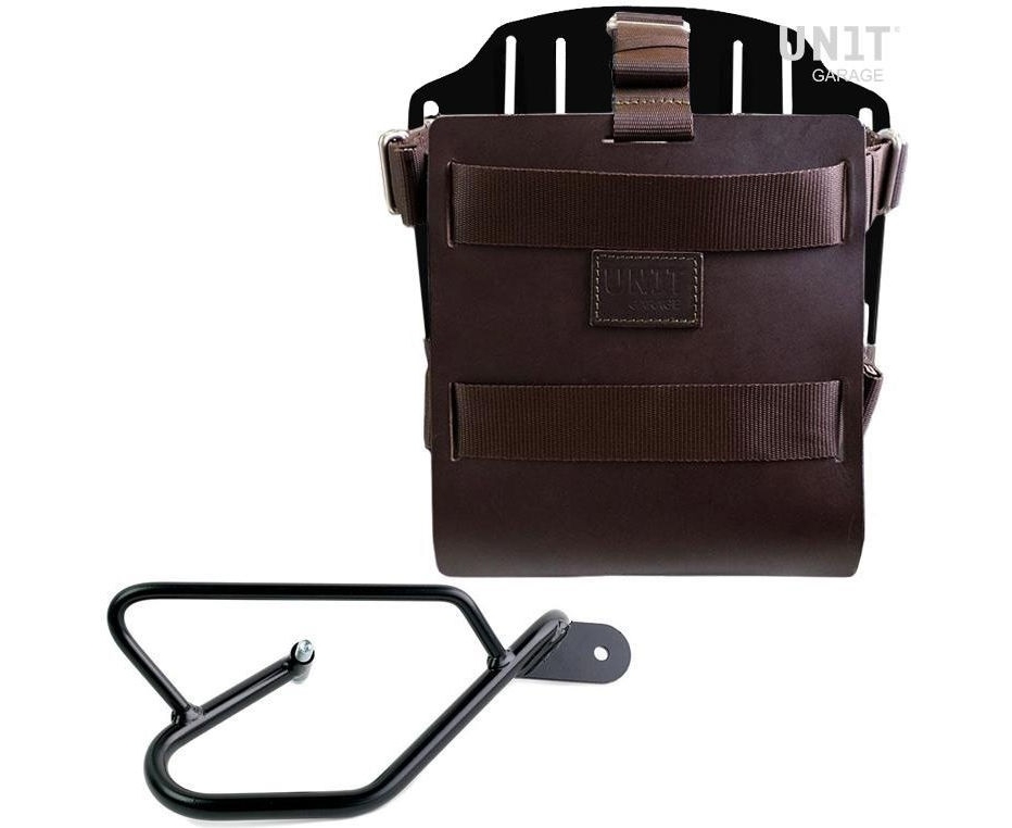 Unit Garage Carrying system in aluminum with adjustable leather front, Quick Release System and frame (2016 until now), Brown/Black | U085+U000+2250DX-Brown-Black