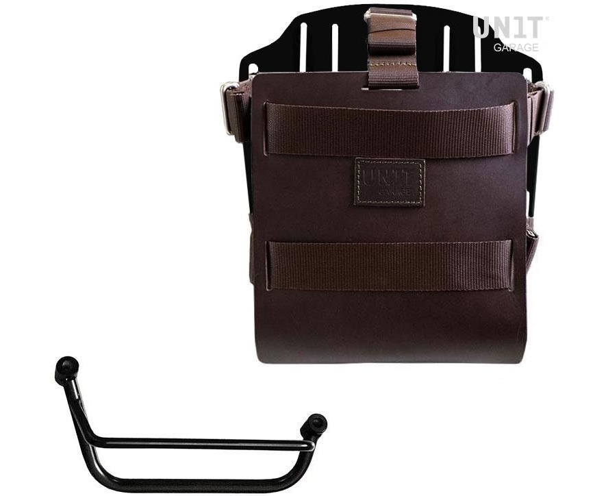 Unit Garage Carrying system in aluminum with adjustable leather front, Quick Release System and frame, Brown/Black | U085+U000+2251DX-Brown-Black