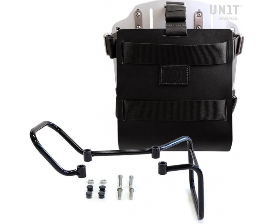Unit Garage Carrying system in aluminum with adjustable leather front, Quick Release System and frame (2017-2019), Black/Silver | U085+U000+3000-Black-Silver