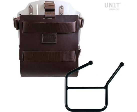 Unit Garage Carrying system in aluminum with adjustable leather front, Quick Release System and frame, Brown/Silver | U085+U000+3007SX-Brown-Silver
