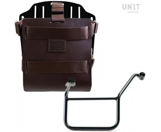 Unit Garage Carrying system in aluminum with adjustable leather front, Quick Release System and frame, Brown/Black | U085+U000+3208SX-Brown-Black