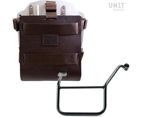 Unit Garage Carrying system in aluminum with adjustable leather front, Quick Release System and frame, Brown/Silver | U085+U000+3208SX-Brown-Silver