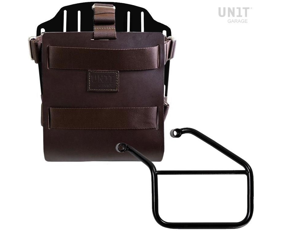 Unit Garage Carrying system in aluminum with adjustable leather front, Quick Release System and frame, Brown/Black | U085+U000+3500SX-Brown-Black