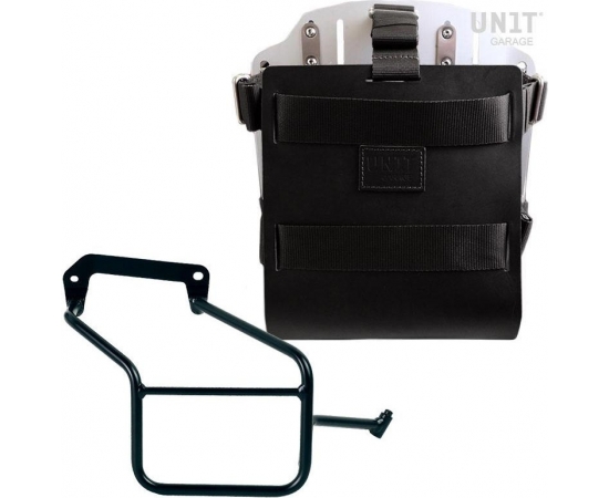 Carrying system in aluminum complete with adjustable leather front. It quickly attaches to our bag holder frames with the quick release system cod.U000 already included and mounted on the back of the plate , which is equipped with a lock for locking on the frame itself. The plate creates a flat mounting surface on the side of the bike, this will allow the transport of unattached bags or other objects, such as sleeping bags, jackets etc. The front flap, with attention to the smallest details with 3 mm leather finishes, can be adjusted using the supplied sliders and can be removed very quickly from the plate.