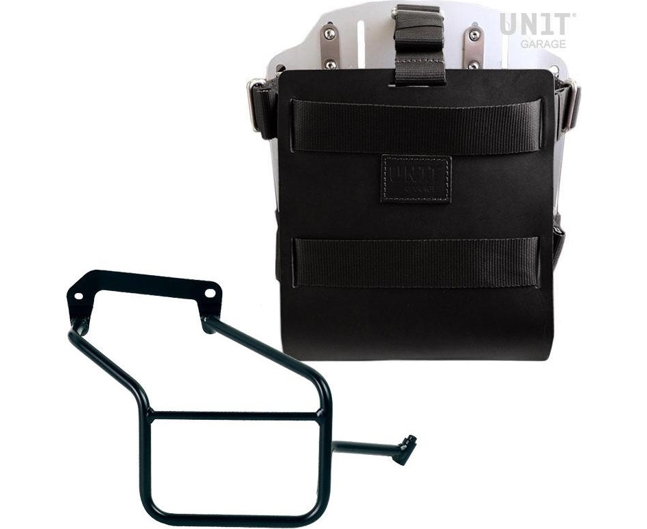 Unit Garage Carrying system in aluminum with adjustable leather front, Quick Release System and frame, Black/Silver | U085+U000+3600DX-Black-Silver